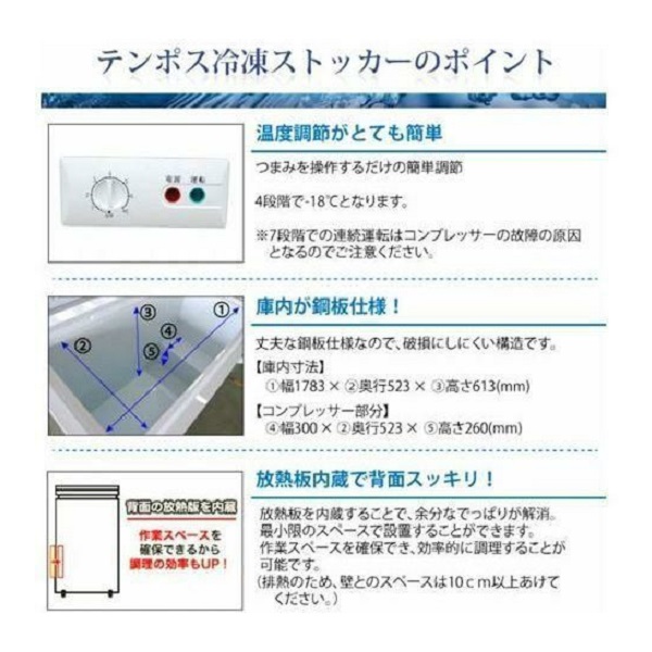 576L テンポス ノンフロン 冷凍ストッカー チェストタイプ TBCF-576-RH