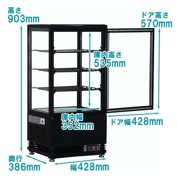 68L テンポス ノンフロン 4面ガラス冷蔵ショーケース TBSC4-068-BK