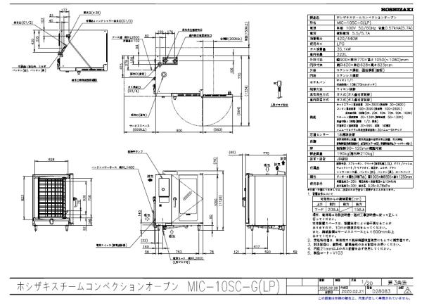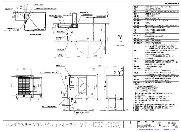 ホシザキ スチームコンベクション スタンダードモデル ガス仕様 単相100V MIC-10SC-G