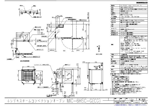ホシザキ スチームコンベクション ハイグレードモデル 電気仕様 三相200V MIC-6HSC3