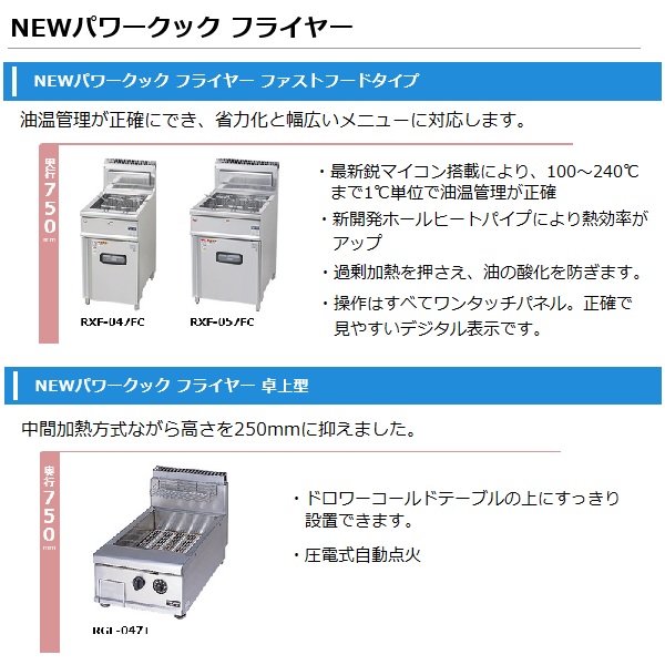 マルゼン NEWパワークック フライヤー ファストフードタイプ RXF-047FC