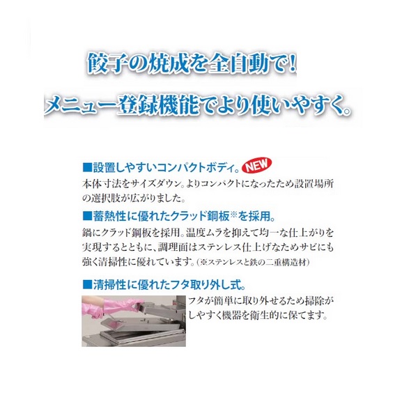 餃子の数量や種類ごとに調理設定が可能です