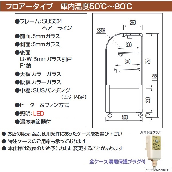 大穂製作所 ホットショーケース フロアータイプ(前引戸) RHGF-Tc-900F